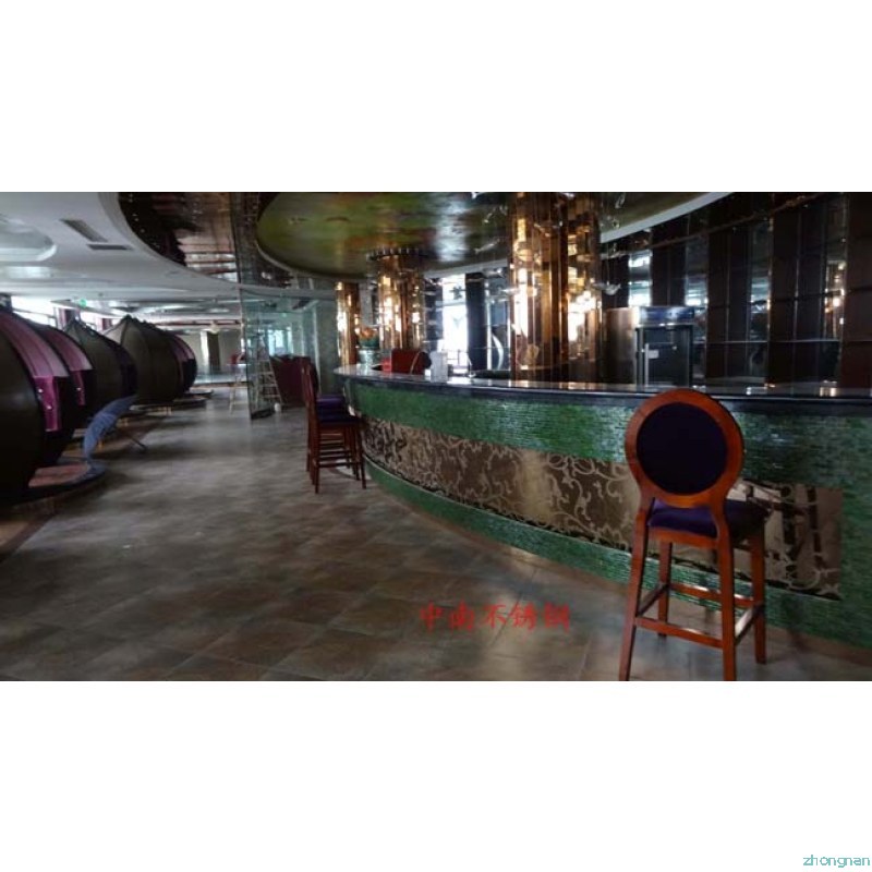 2012年,明鉑爾與荷花廣場流金歲月西餐廳,與北京星亞澤園裝飾工程公司合作。制作玫瑰加荷花蝕刻酒柜,不銹鋼藝術造型。