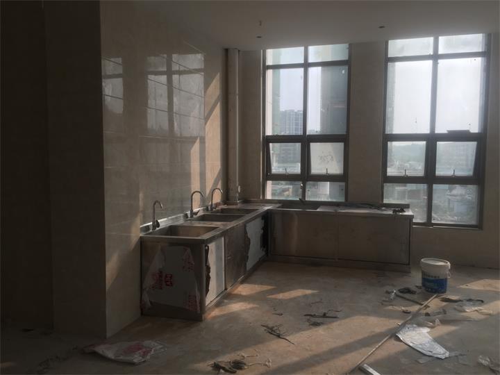 信陽宏信國際大酒店定制設(shè)計(jì)-不銹鋼備餐柜。采用304立方體臺(tái)面,單獨(dú)每套分割開,上置不銹鋼層架,方便放餐盤。衛(wèi)生,潔凈,SUS304食品級(jí),可以使用一百年,不變形,不發(fā)脹,不褪色。