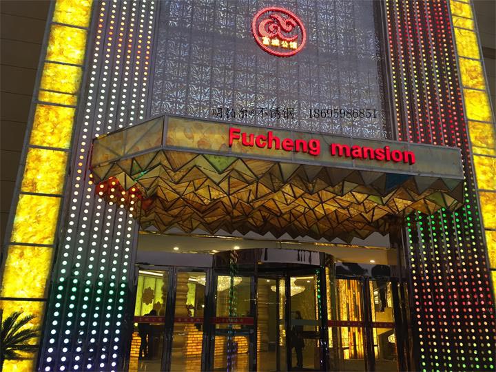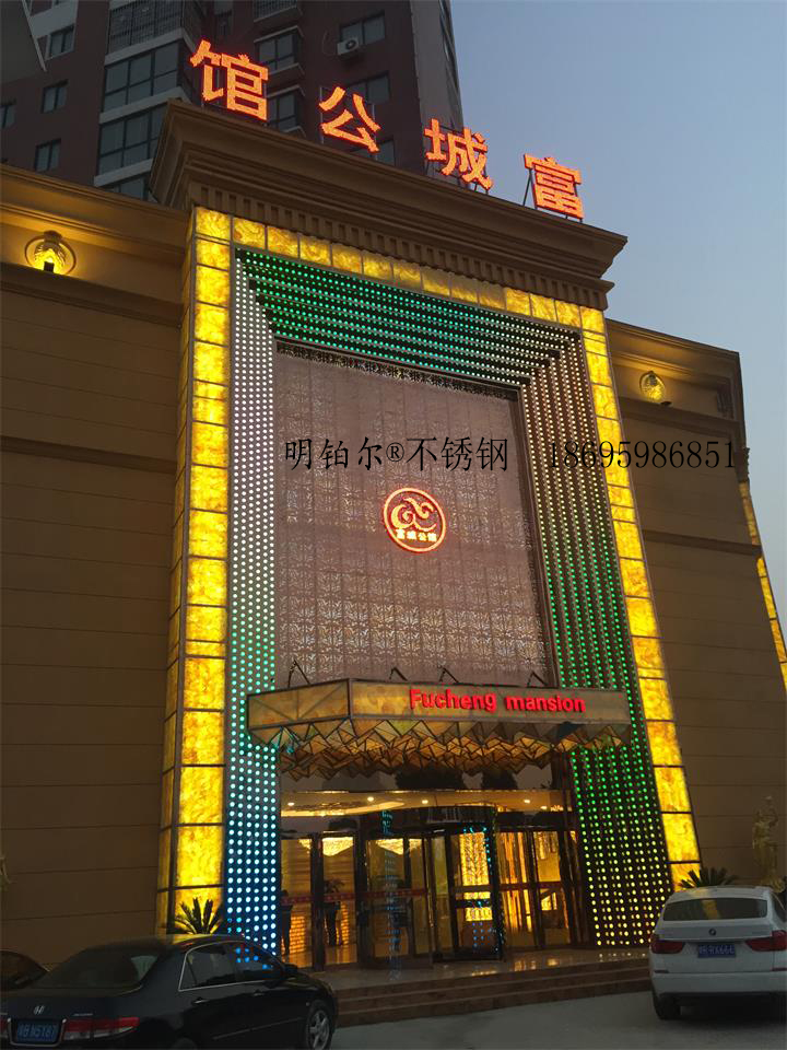 唐河富城公館國際會所設(shè)計(jì)定制明鉑爾?不銹鋼藝術(shù)屏風(fēng),雕花,造型,旋轉(zhuǎn)門工程