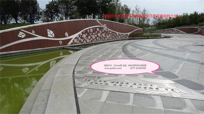 明鉑爾?不銹鋼月季園主入口大門304不銹鋼10毫米厚欄桿,6毫米厚水池10塊月季花圖,利用不銹鋼的拉絲紋路反光色差經(jīng)驗,解決了北京設計院林博士要求很難做到的不銹鋼激光雕刻2毫米深度的月季花圖效果,經(jīng)過我數(shù)10次的大樣,努力,研究終于做出了最佳理想的效果,出乎意料之外的精美,背后多少時間的付出,不惜一切代價的努力方能成就精品。1957年至今13塊月季名稱地雕,近200平方擋墻6毫米月季花雕刻圖,這些所有的產(chǎn)品沒處細節(jié),每一條線都經(jīng)過CAD在電腦修改檢查再修改再檢查,打樣再修改再細化的一個漫長的圖紙修改過程最終敲定的方案效果,擋土墻鉚釘內(nèi)陷,我們加焊接整體再拉絲處理,每一處方案都是創(chuàng)最優(yōu)品質(zhì)去展現(xiàn)給南陽不銹鋼月季藝術的高水準,為迎接全國人民的到來參觀,憑著高要求做我們最優(yōu)的產(chǎn)品奉獻給南陽這片土地…