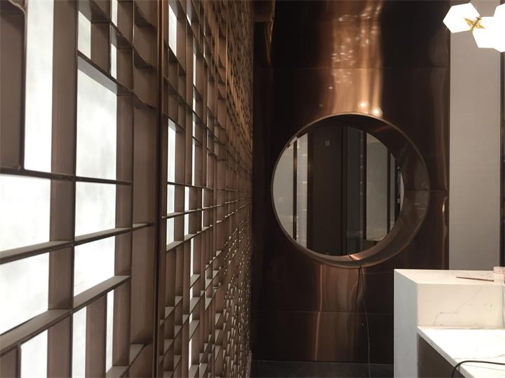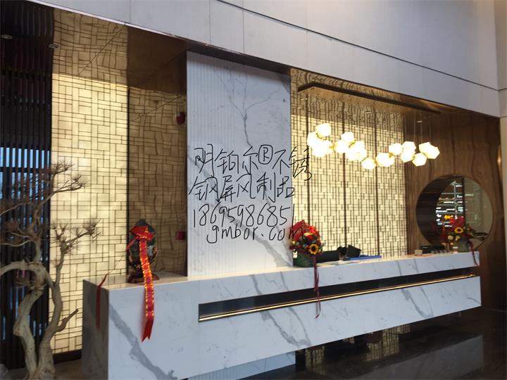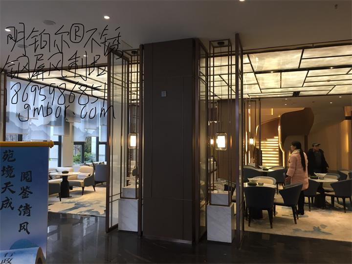 不銹鋼藝術(shù)屏風(fēng),5mm*20mm尺寸拼接現(xiàn)代式與中國風(fēng)結(jié)合的藝術(shù)紅古銅屏風(fēng)背景墻吧臺