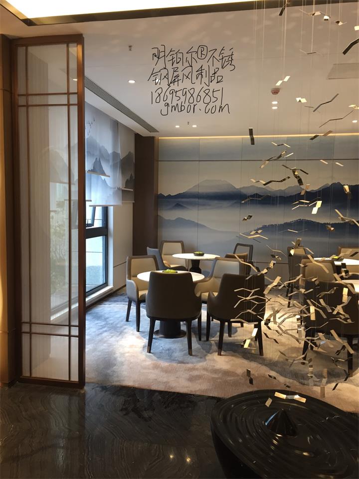 南陽市高明不銹鋼有限公司,為南召青楓苑售樓部 專業(yè)定制不銹鋼藝術(shù)屏風(fēng)
