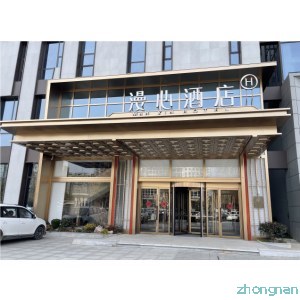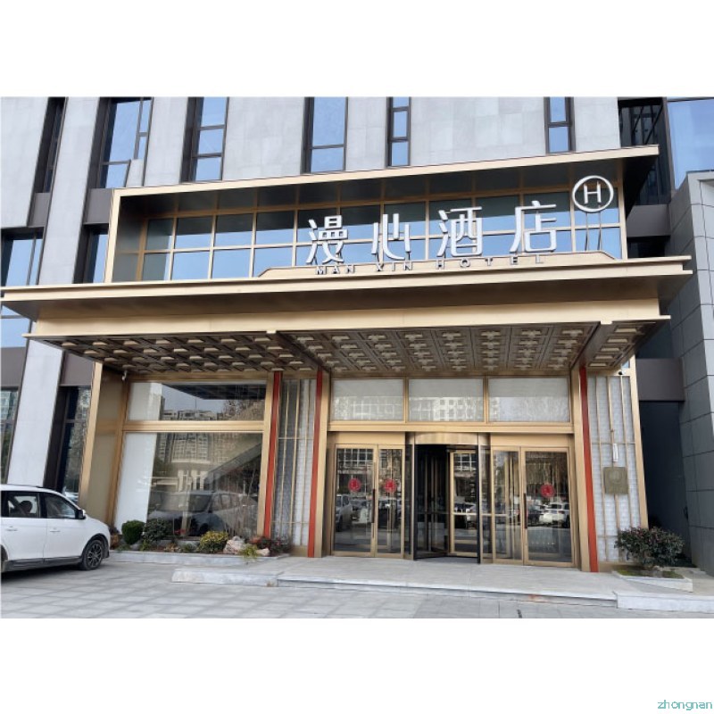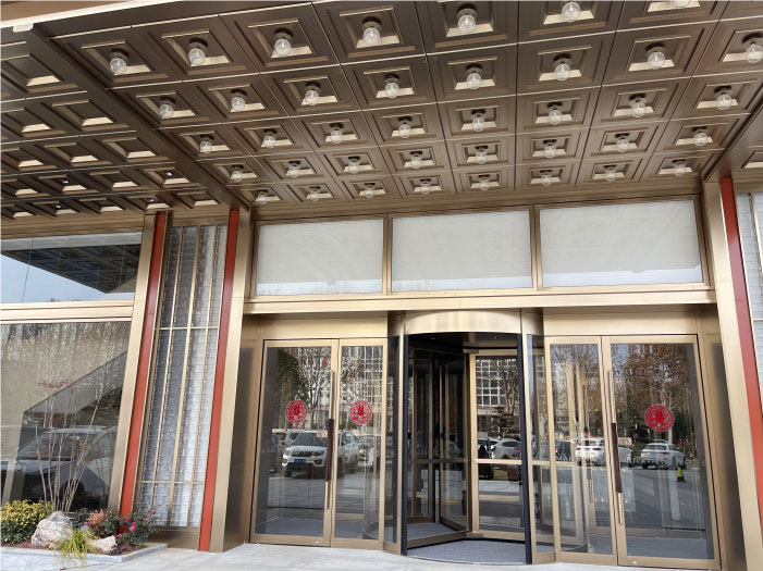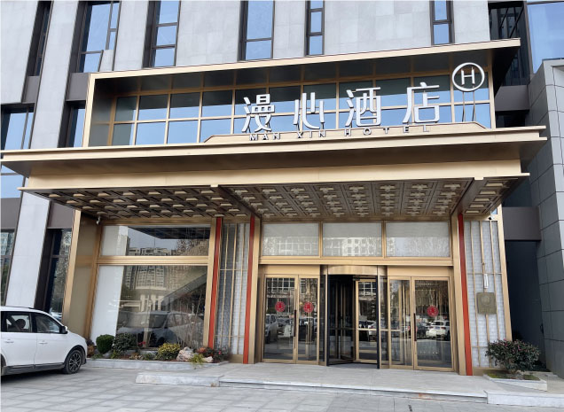 漫心酒店不銹鋼定制門頭和不銹鋼自動旋轉(zhuǎn)門