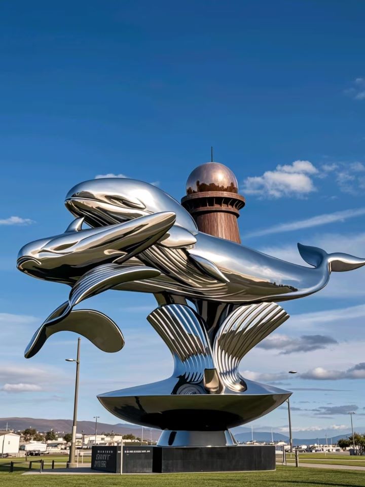 - 公共景觀:在城市的公園、廣場、海濱步道等公共空間中,不銹鋼鯨魚雕塑可以作為標(biāo)志性的景觀元素,吸引人們的目光,為城市增添藝術(shù)氣息和文化氛圍。
