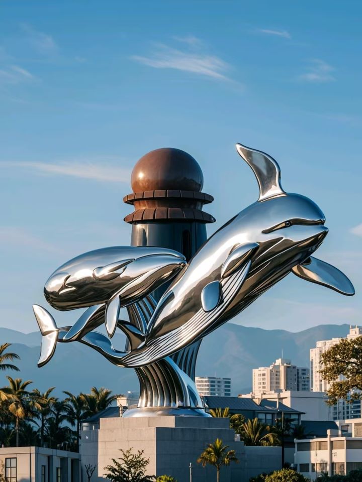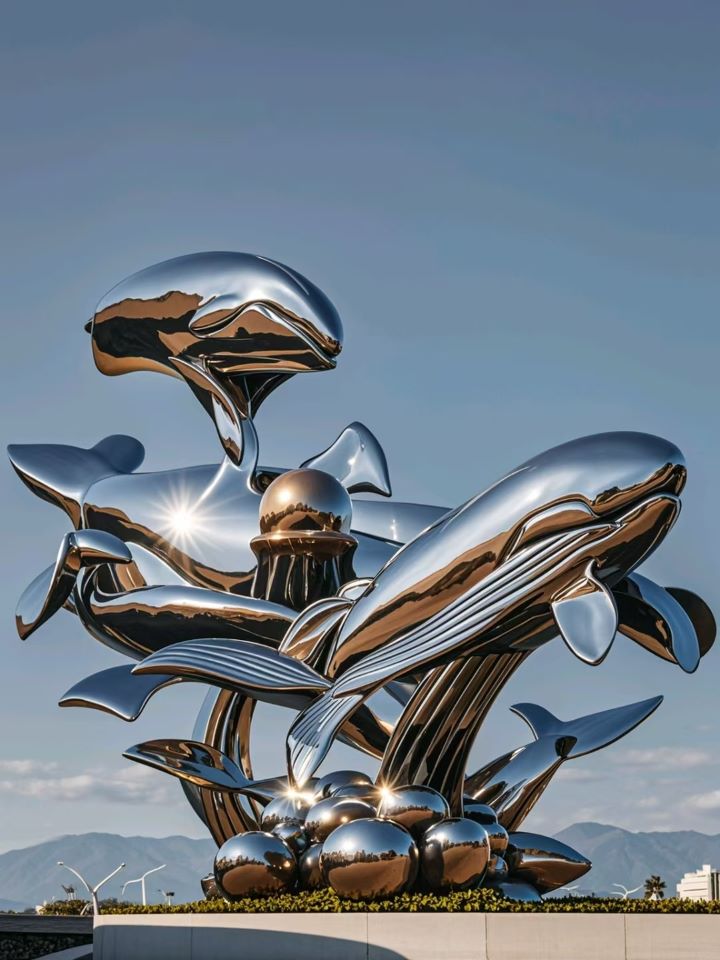 - 藝術(shù)價值:作為一件藝術(shù)品,不銹鋼鯨魚造型雕塑具有較高的藝術(shù)價值。它不僅展現(xiàn)了雕塑師的精湛技藝和藝術(shù)創(chuàng)造力,還通過獨特的造型和材質(zhì),為人們