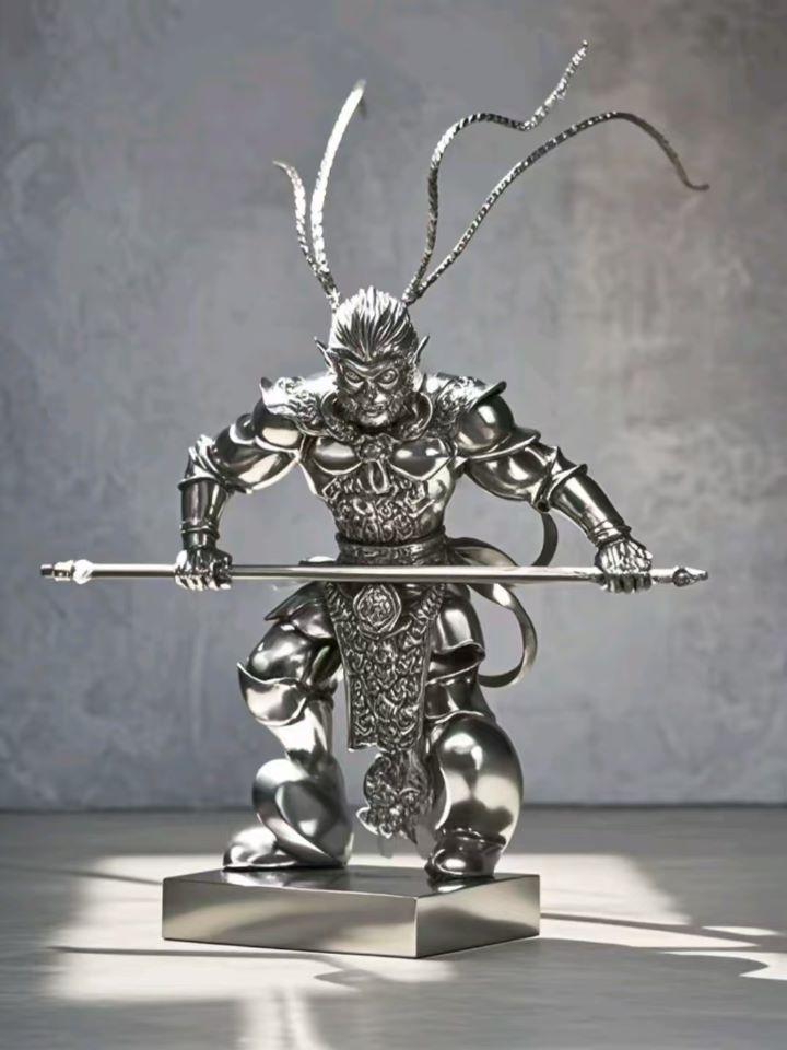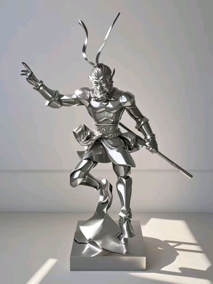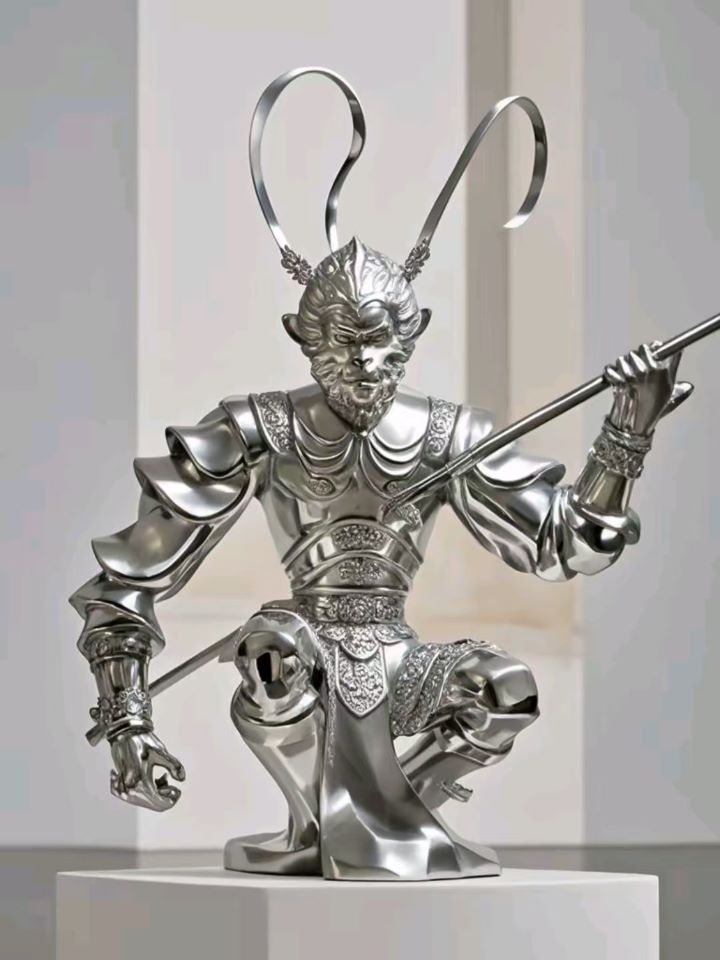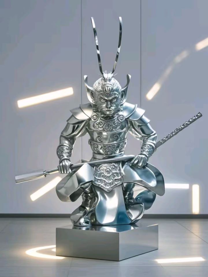該雕塑造型上,多以《西游記》中孫悟空的經(jīng)典形象為藍本,如齊天大圣、行者等形象,部分還會結合現(xiàn)代藝術風格